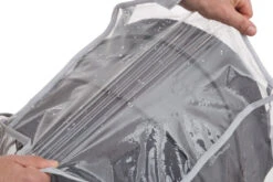 Je kindje kan heerlijk droog in de kinderwagen zitten dankzij de universele regenhoes van Babygo! De transparante regenhoes is universeel en past op de meeste kinderwagens. Je bevestigt de hoes makkelijk aan de poten van de kinderwagen.Â