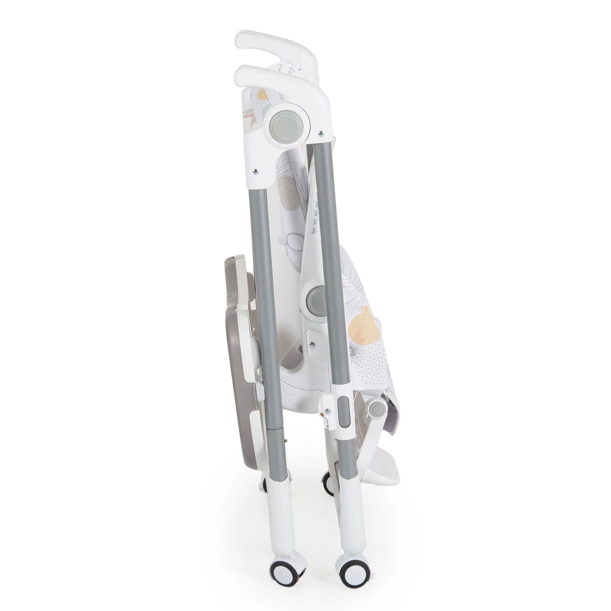 Heb je de stoel even niet in gebruik? Verplaats hem gemakkelijk met de wieltjes of klap hem compact in, zo berg je hem eenvoudig op! De stoel is geschikt voor kindjes die zelfstandig rechtop kunnen zitten (rond de 6 maanden) totdat je kindje 15 kg weegt.Â