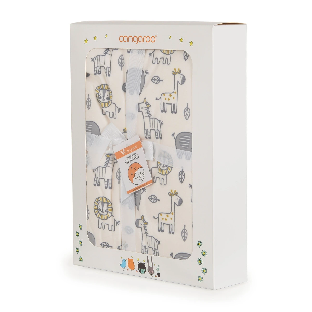 Houd je kindje lekker warm met de fijne Shaggy Wiegdeken van Cangaroo! Deze mooie en zachte deken heeft een schattig design met diertjes en fleurt zeker de babykamer op.Â