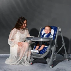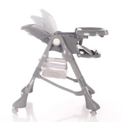 De kinderstoel kan eenvoudig in- en uitgeklapt worden, zodat deze makkelijk op te bergen of mee te nemen is. Met de wielen aan zowel de voor- als achterkant van deze kinderstoel verplaats je de stoel ook nog eens heel gemakkelijk!Â