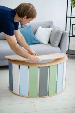 Het tafelblad is gemaakt van stevig berkenhout en is zeer eenvoudig te monteren op de schommelstoel dankzij de groeven aan de onderzijde.Â