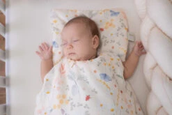Het kussentje is gemaakt van 100% bamboe katoen. Bamboe katoen ventileert goed. De stof is hypoallergeen, wat betekent dat zelfs de meest gevoelige kindjes goed tegen deze stof kunnen. Daarnaast is de bamboe stof antibacterieel en gaat het schimmel tegen.