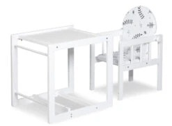 Met de MamaLoes Wit Lily Kinderstoel kan je kleintje op gelijke hoogte met jou mee-eten. Wanneer je kleintje wat groter wordt, kan de kinderstoel worden omgetoverd tot een eigen eettafel of speeltafel.