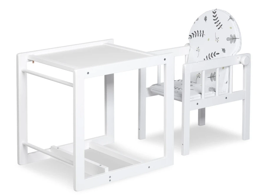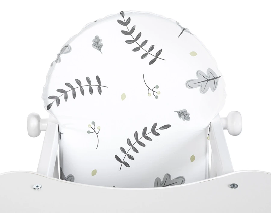 De stabiele kinderstoel kan worden gebruikt als kinderstoel of als los stoeltje met eigen tafeltje. Het stoeltje is voorzien van zachte bekleding met verschillende bladeren als print. Als je kindje knoeit in deze stoel is dat geen probleem! De bekleding kan je gemakkelijk af doen met een vochtige doek. Ook het tafelblad is gemakkelijk schoon te maken.