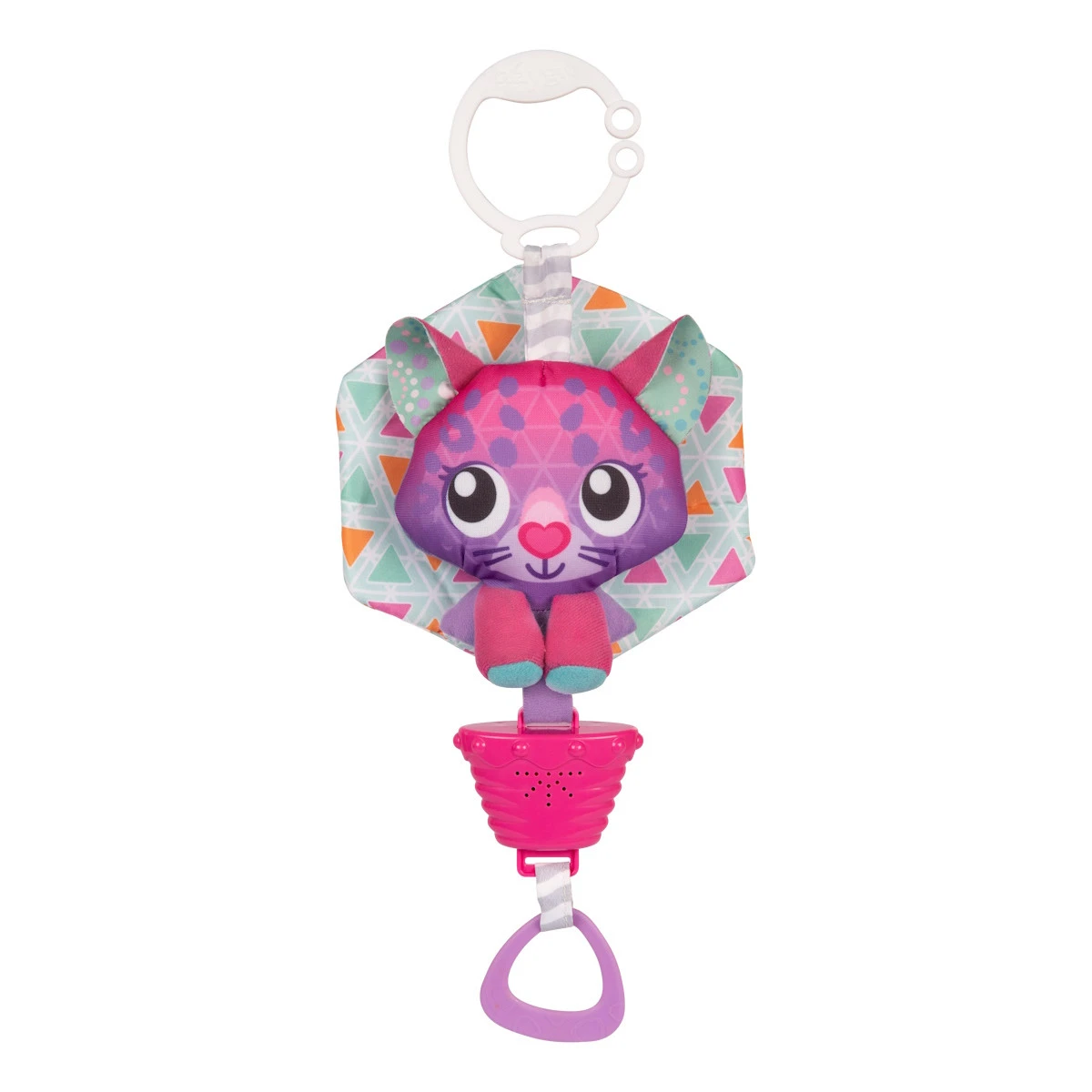 Door de felle kleurtjes valt het katje lekker op en zal je kleintje er snel naar grijpen. Wanneer je aan het koortje trekt aan de onderkant, speelt er een leuk muziekje af. Het koortje is voor je kleintje makkelijk te grijpen. Met het muziekdoosje verveelt je kleine zich niet thuis of onderweg.